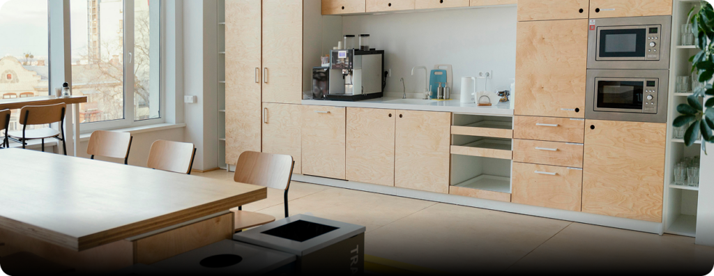 - Cabinets: plywood, MDF, laminate