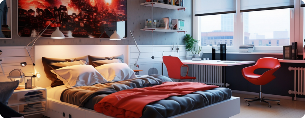 Furniture that serves more than one purpose is essential for bedroom interior design small layouts. Storage beds with drawers or hydraulic mechanisms are especially useful, as they eliminate the need for additional cabinets.